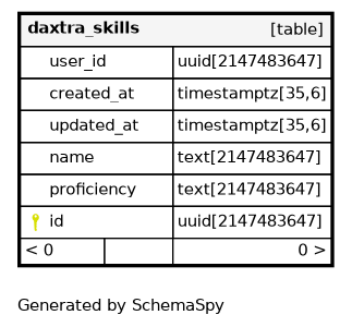 | daxtra_skills_pkey | Primary key | Asc | id |