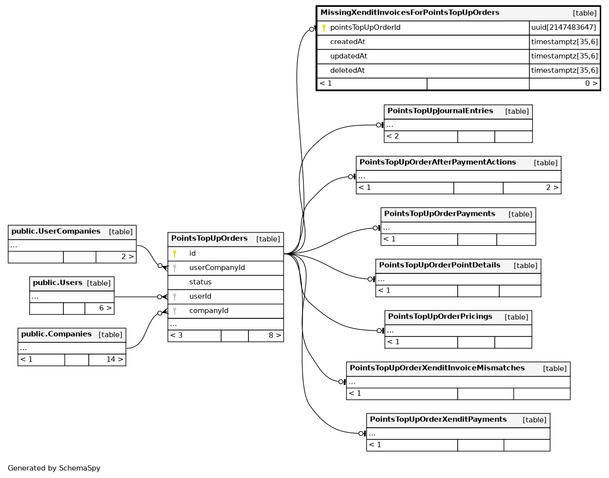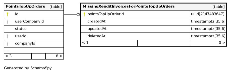 | MissingXenditInvoicesForPointsTopUpOrders_pkey | Primary key | Asc | pointsTopUpOrderId |