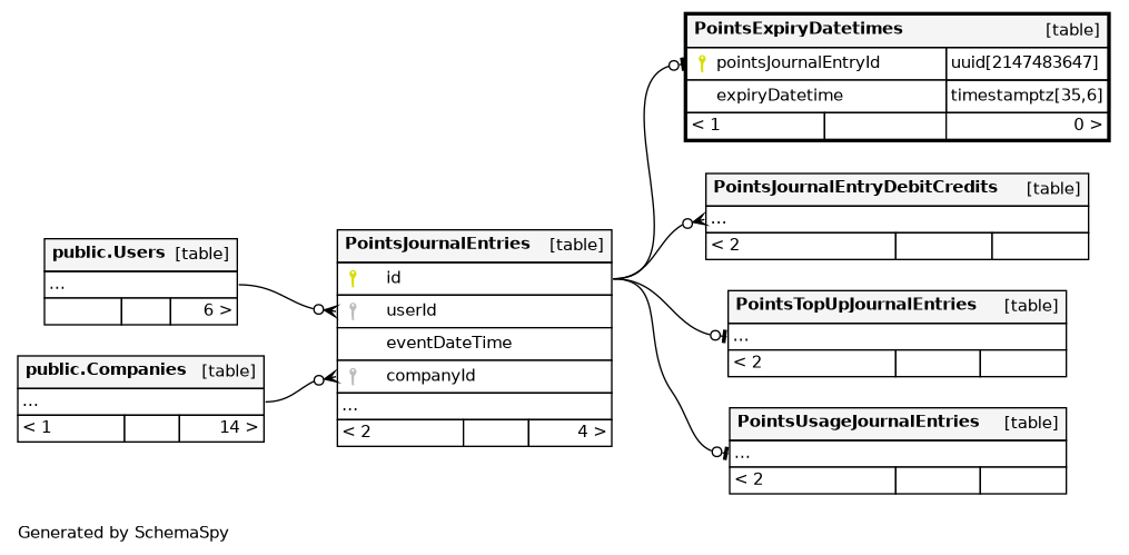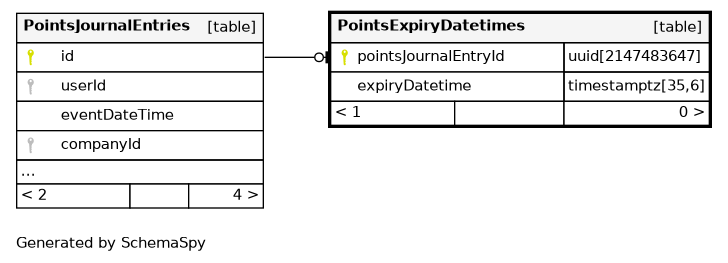 | PointsExpiryDatetimes_pkey | Primary key | Asc | pointsJournalEntryId |