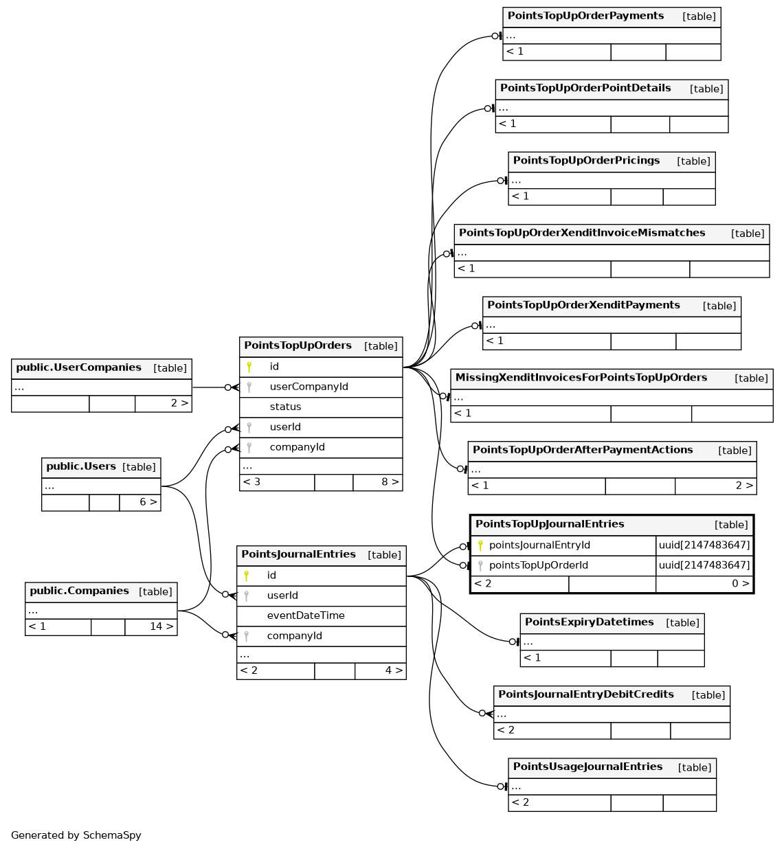 | PointsTopUpJournalEntries_pkey | Primary key | Asc | pointsJournalEntryId |