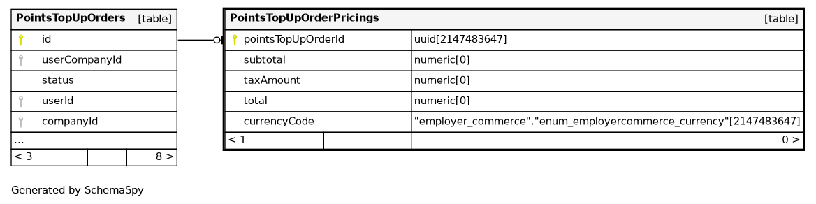 | PointsTopUpOrderPricings_pkey | Primary key | Asc | pointsTopUpOrderId |
