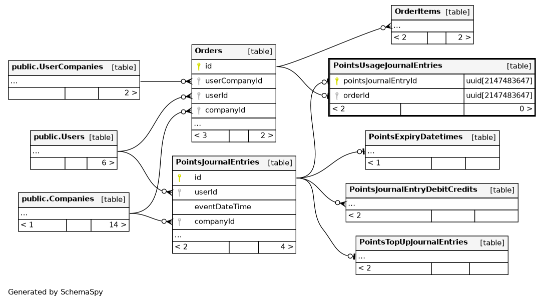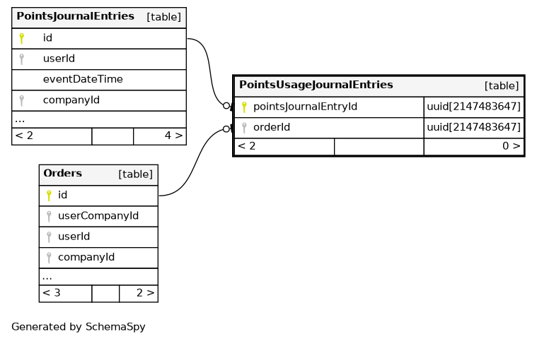 | PointsUsageJournalEntries_pkey | Primary key | Asc | pointsJournalEntryId |