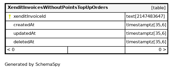 | XenditInvoicesWithoutPointsTopUpOrders_pkey | Primary key | Asc | xenditInvoiceId |