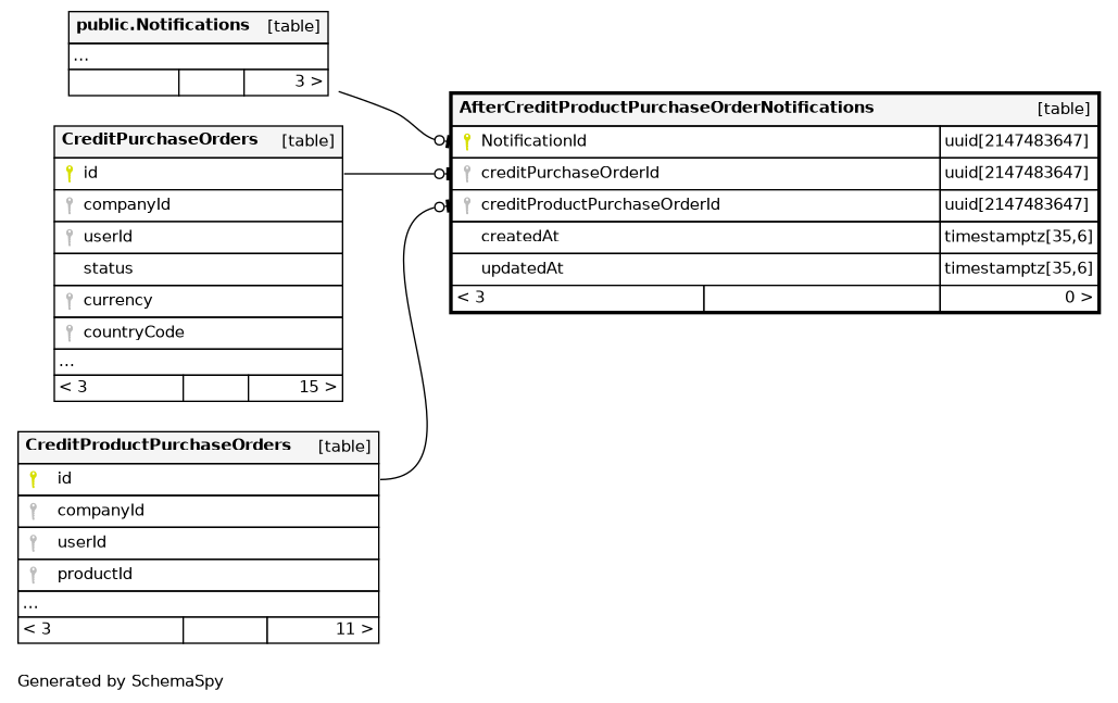 | AfterCreditProductPurchaseOrderNotifications_pkey | Primary key | Asc | NotificationId |