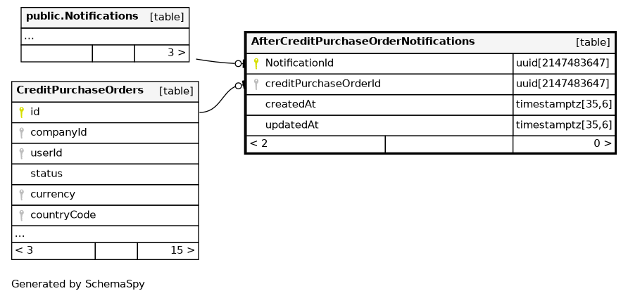 | AfterCreditPurchaseOrderNotifications_pkey | Primary key | Asc | NotificationId |
