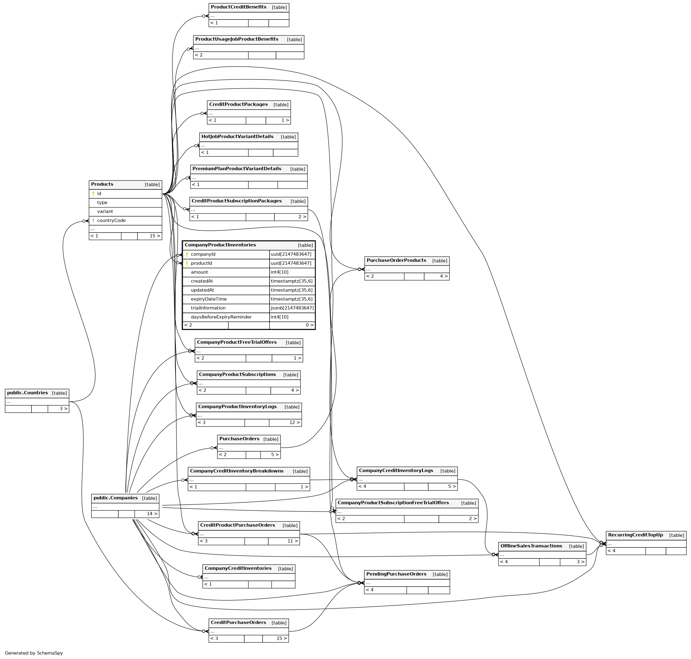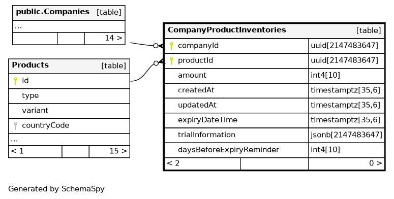 | CompanyProductInventories_pkey | Primary key | Asc/Asc | companyId + productId |