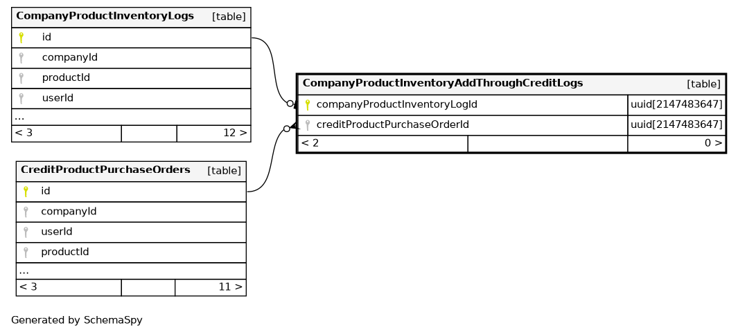 | CompanyProductInventoryAddThroughCreditLogs_pkey | Primary key | Asc | companyProductInventoryLogId |