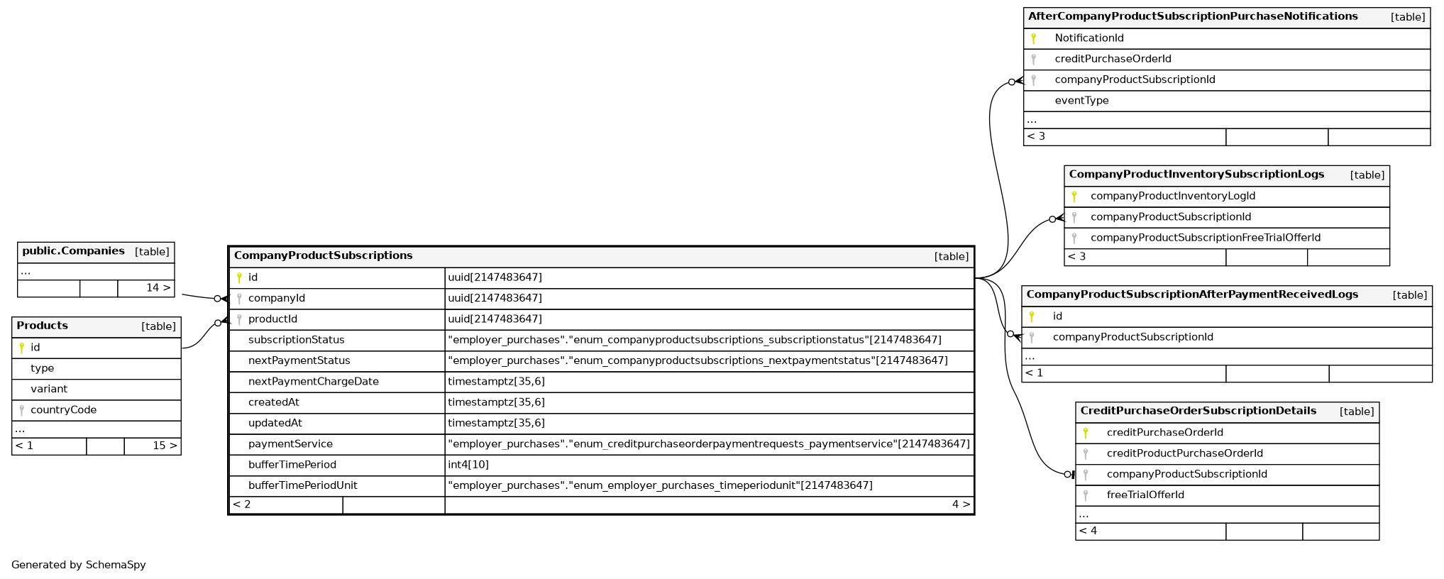 | CompanyProductSubscriptions_pkey | Primary key | Asc | id |
