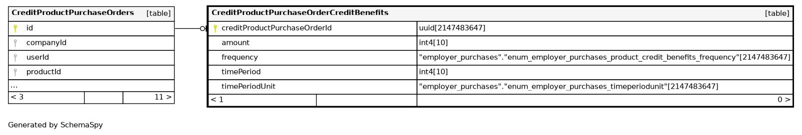 | CreditProductPurchaseOrderCreditBenefits_pkey | Primary key | Asc | creditProductPurchaseOrderId |