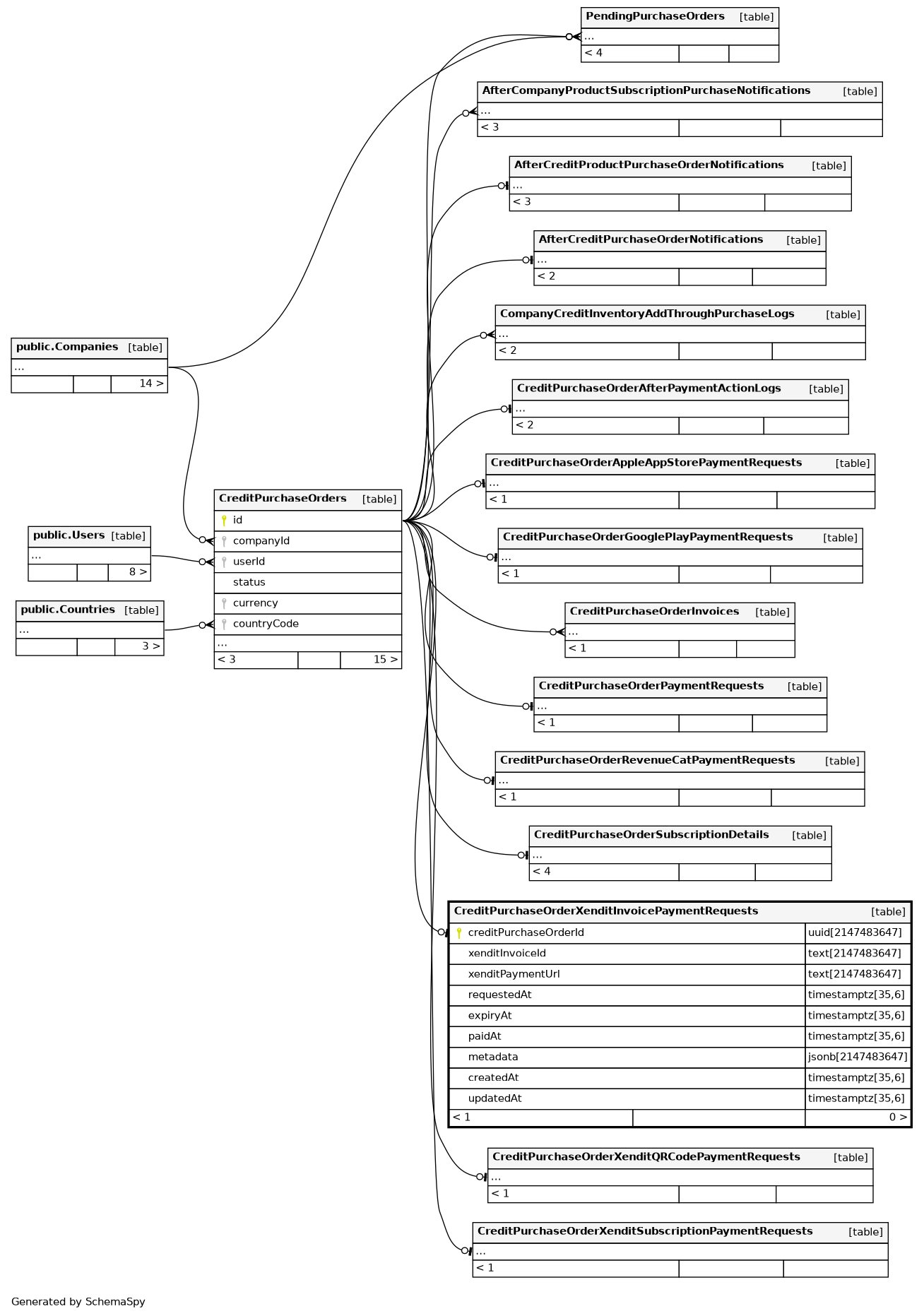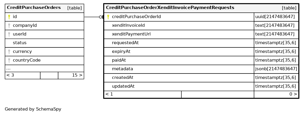 | CreditPurchaseOrderXenditInvoicePaymentRequests_pkey | Primary key | Asc | creditPurchaseOrderId |