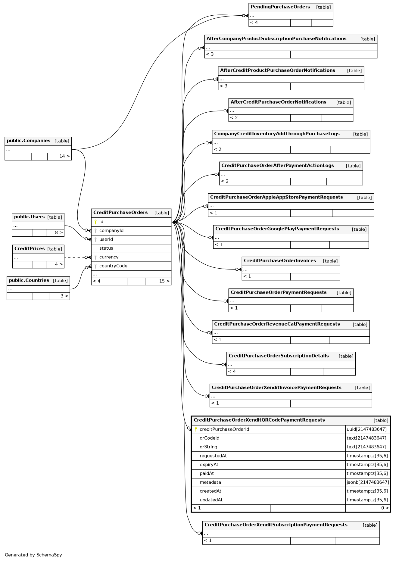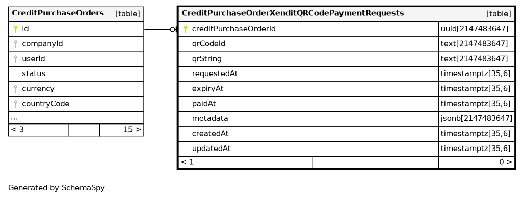 | CreditPurchaseOrderXenditQRCodePaymentRequests_pkey | Primary key | Asc | creditPurchaseOrderId |