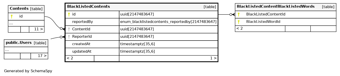 | BlackListedContents_pkey | Primary key | Asc | id |