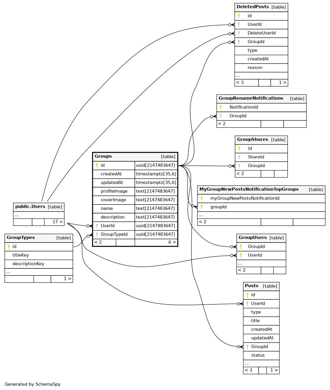 | Groups_pkey | Primary key | Asc | id |