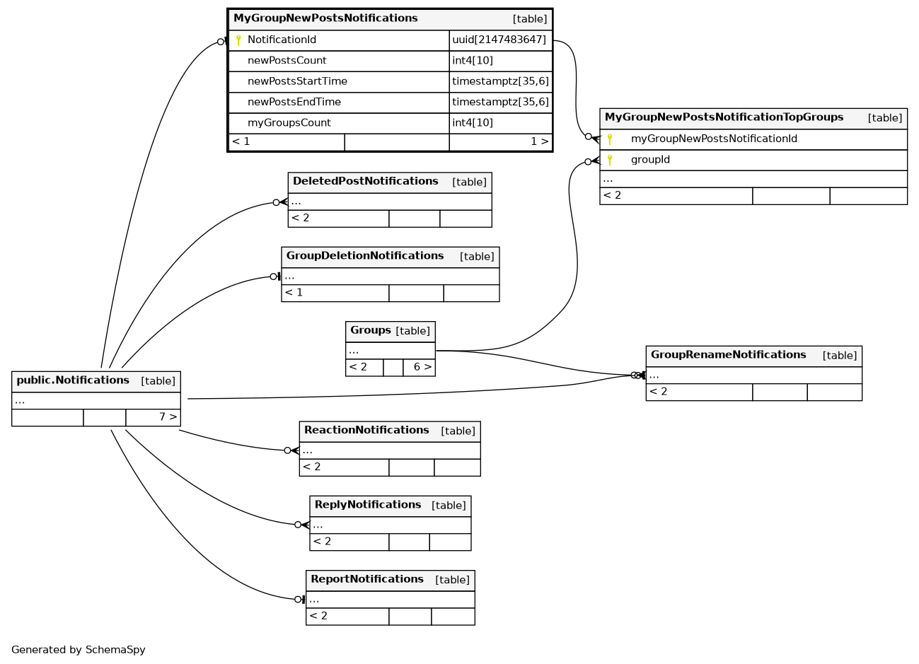 | MyGroupNewPostsNotifications_pkey | Primary key | Asc | NotificationId |