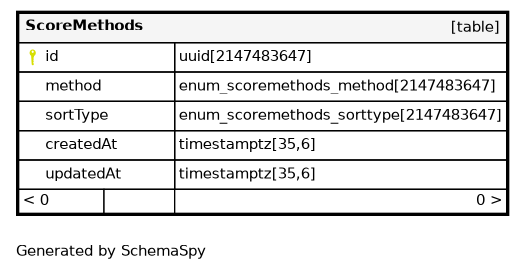 | ScoreMethods_pkey | Primary key | Asc | id |