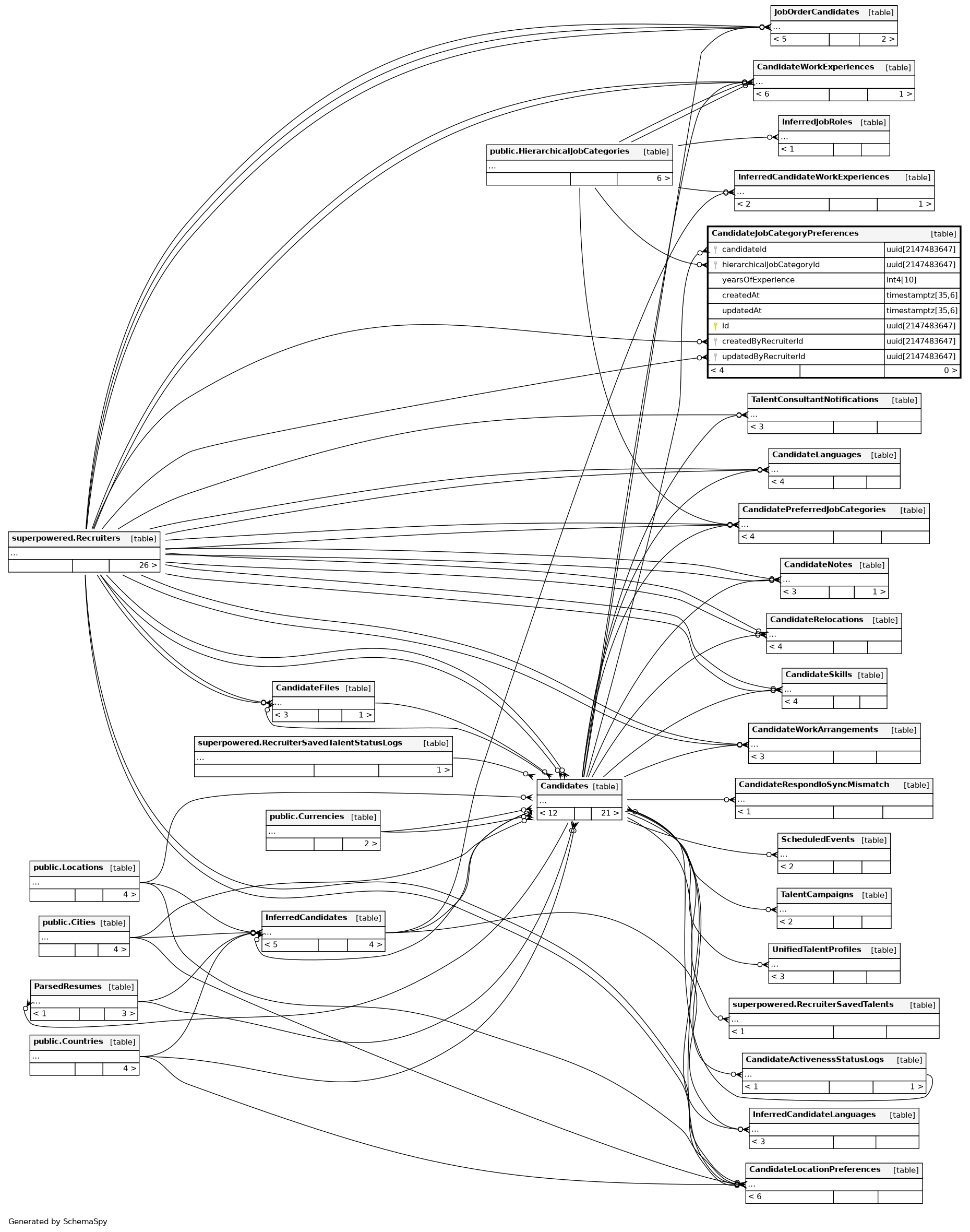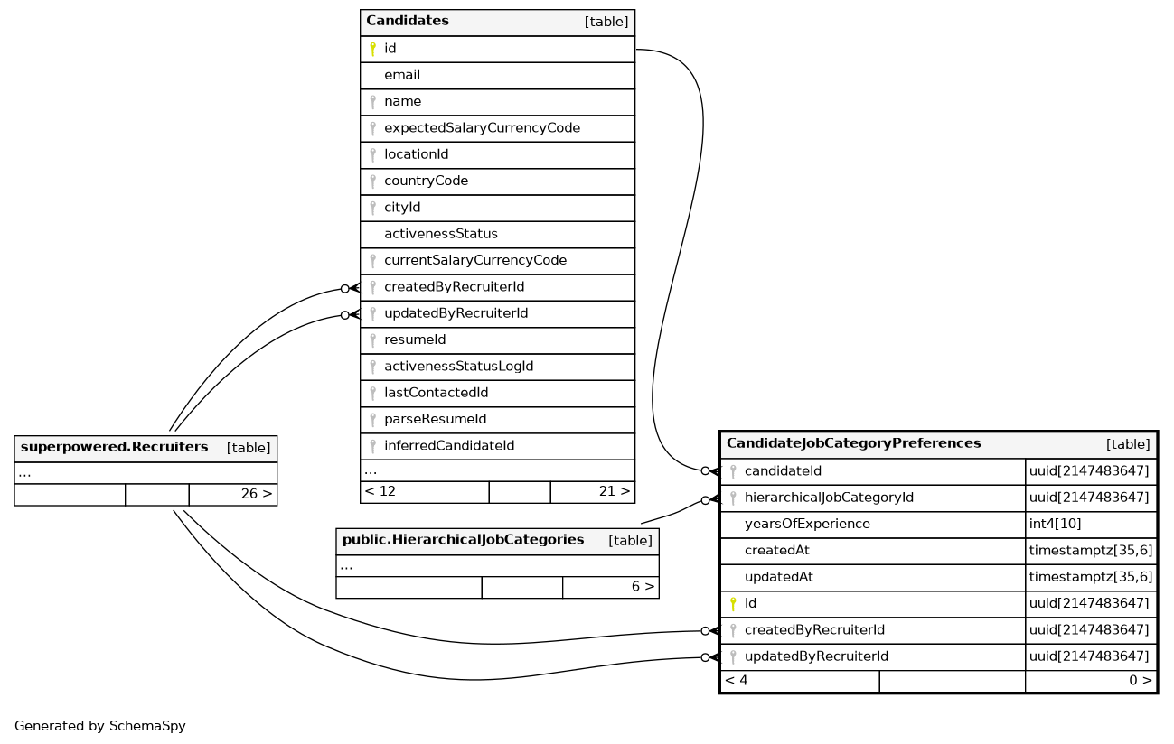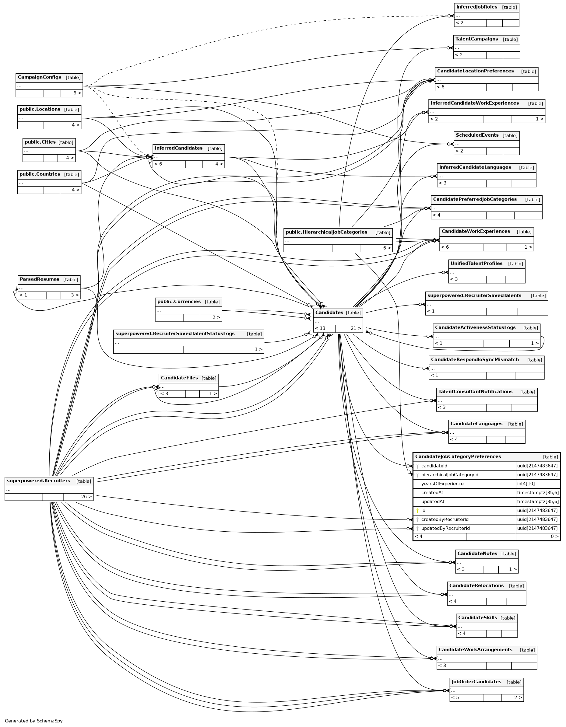 | CandidateJobCategoryPreferences_candidateId_hierarchicalJobCate | Must be unique | Asc/Asc | candidateId + hierarchicalJobCategoryId |