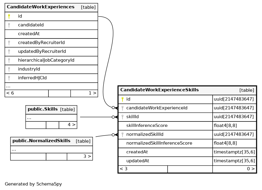 | CandidateWorkExperienceSkills_pkey | Primary key | Asc | id |