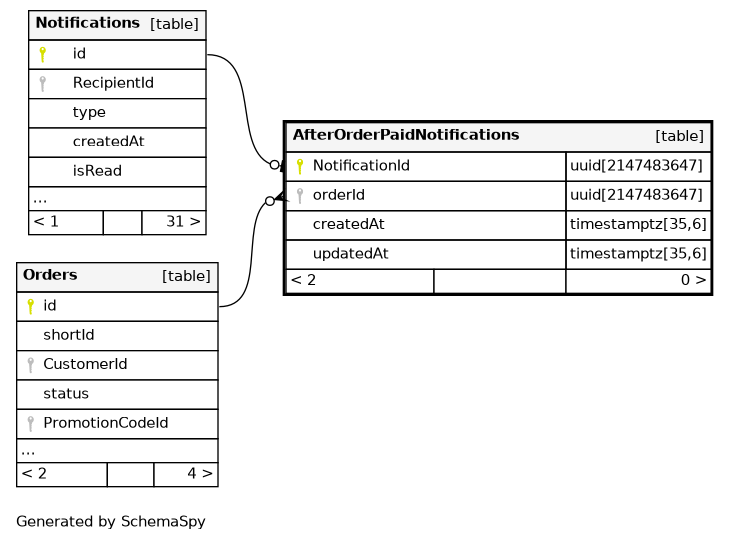 | AfterOrderPaidNotifications_pkey | Primary key | Asc | NotificationId |