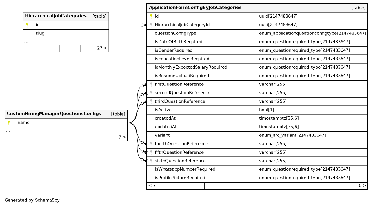 | ApplicationFormConfigByJobCategories_pkey | Primary key | Asc | id |