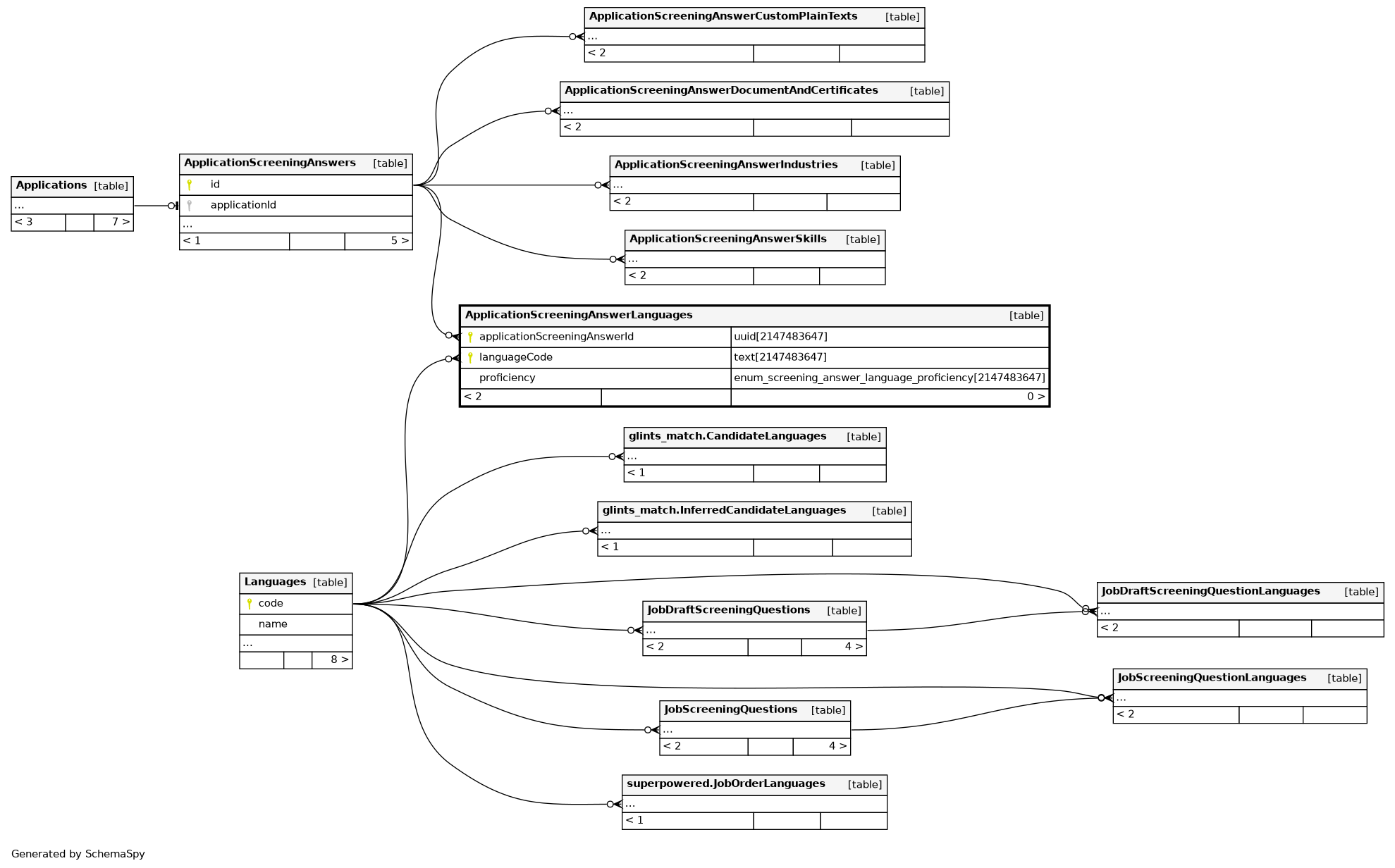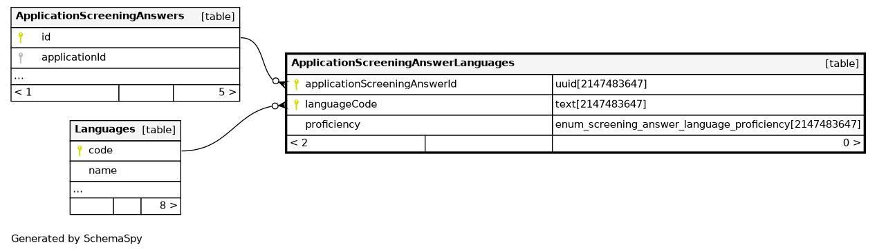 | ApplicationScreeningAnswerLanguages_pkey | Primary key | Asc/Asc | applicationScreeningAnswerId + languageCode |