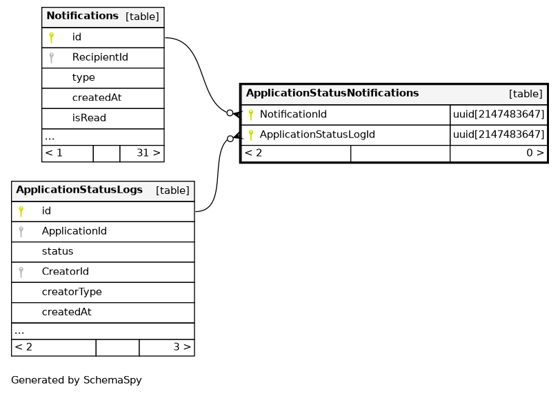 | ApplicationStatusNotifications_pkey | Primary key | Asc/Asc | NotificationId + ApplicationStatusLogId |
