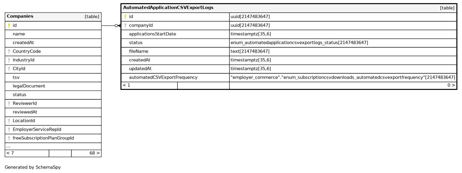 | AutomatedApplicationCSVExportLogs_companyId_applicationsStartDa | Must be unique | Asc/Asc/Asc | companyId + applicationsStartDate + status |