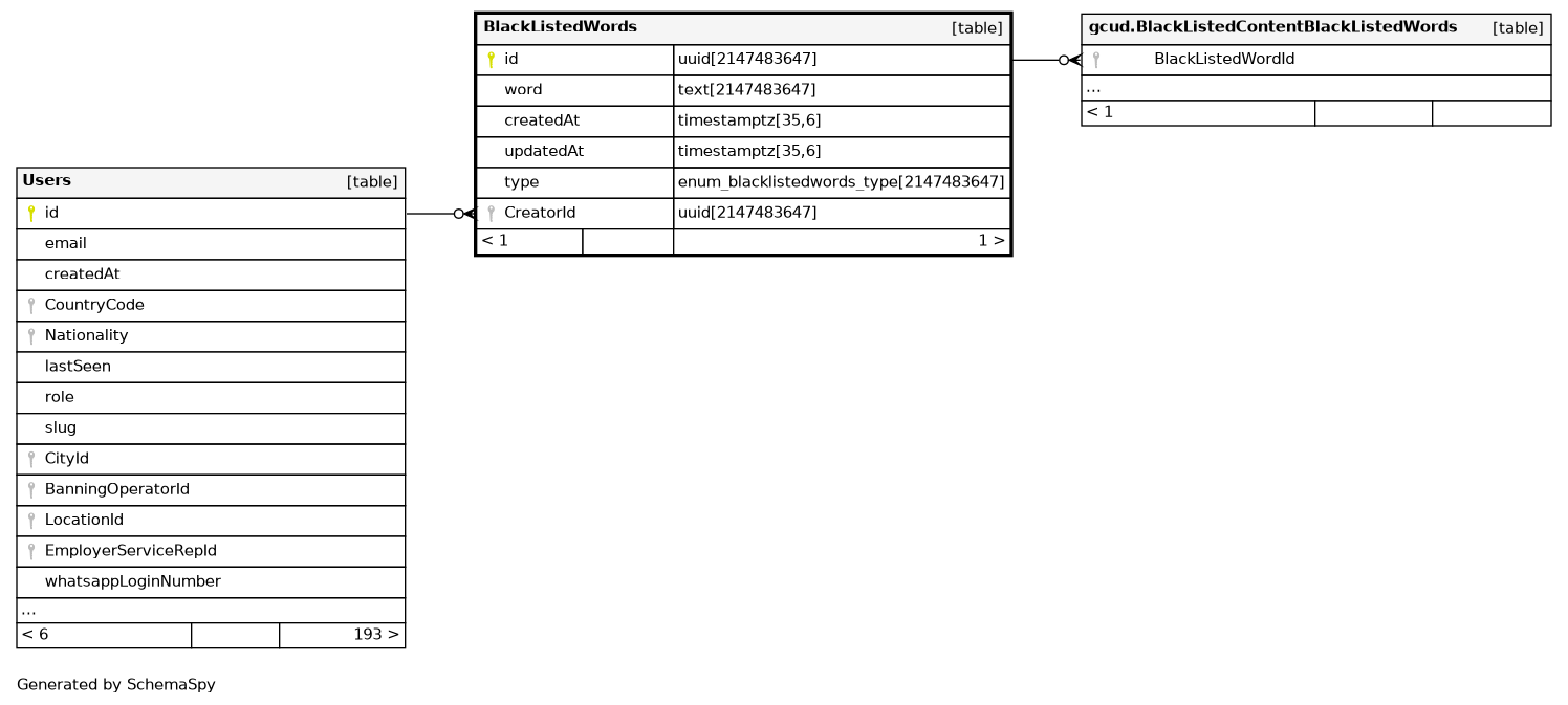 | BlackListedWords_pkey | Primary key | Asc | id |