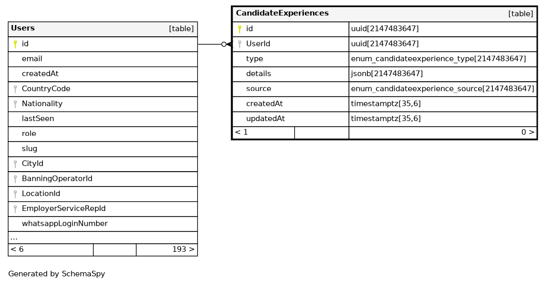 | CandidateExperiences_pkey | Primary key | Asc | id |