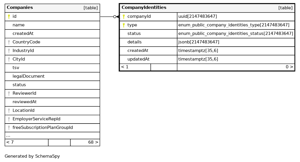 | CompanyIdentities_pkey | Primary key | Asc/Asc | companyId + type |
