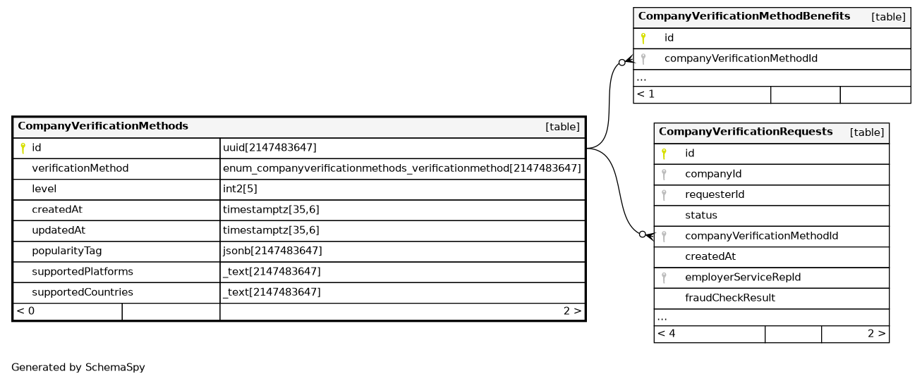 | CompanyVerificationMethods_pkey | Primary key | Asc | id |