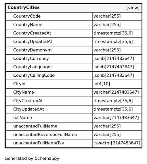 | CountryLanguages | jsonb | 2147483647 | √ | null |