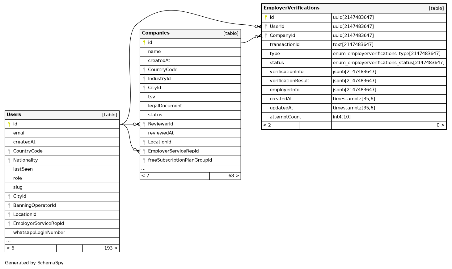 | EmployerVerifications_UserId_status_idx | Performance | Asc/Asc | UserId + status |