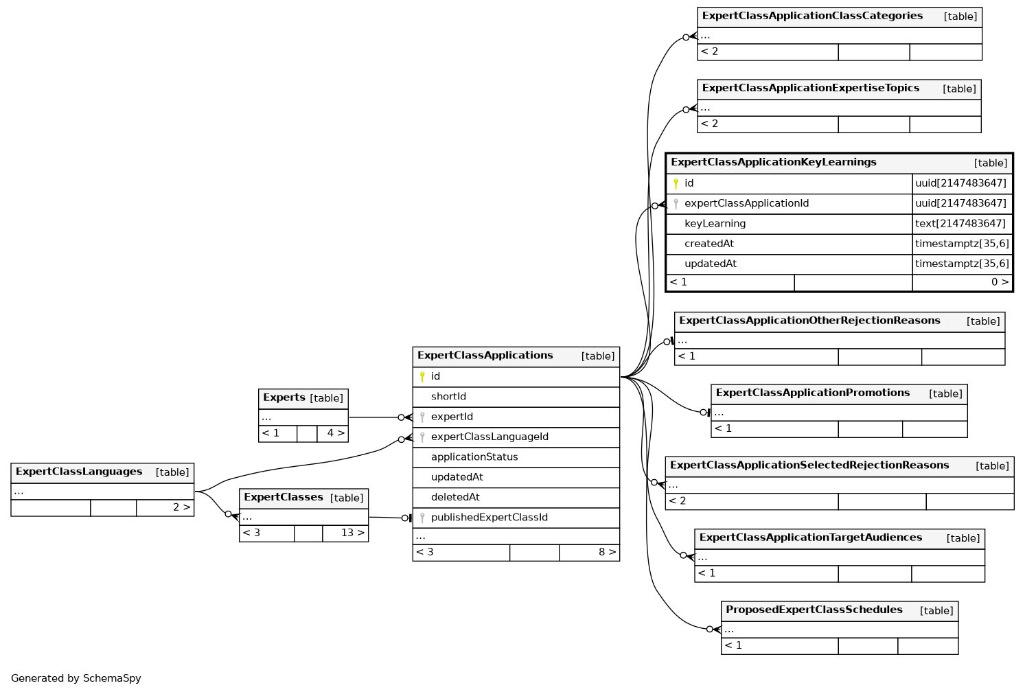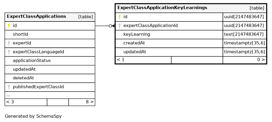 | ExpertClassApplicationKeyLearnings_pkey | Primary key | Asc | id |