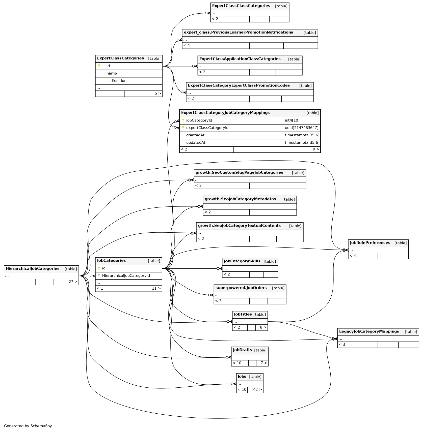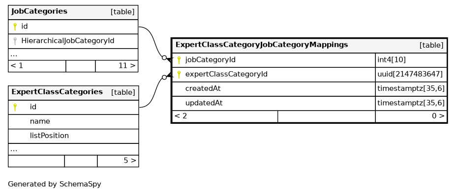 | ExpertClassCategoryJobCategoryMappings_pkey | Primary key | Asc/Asc | jobCategoryId + expertClassCategoryId |