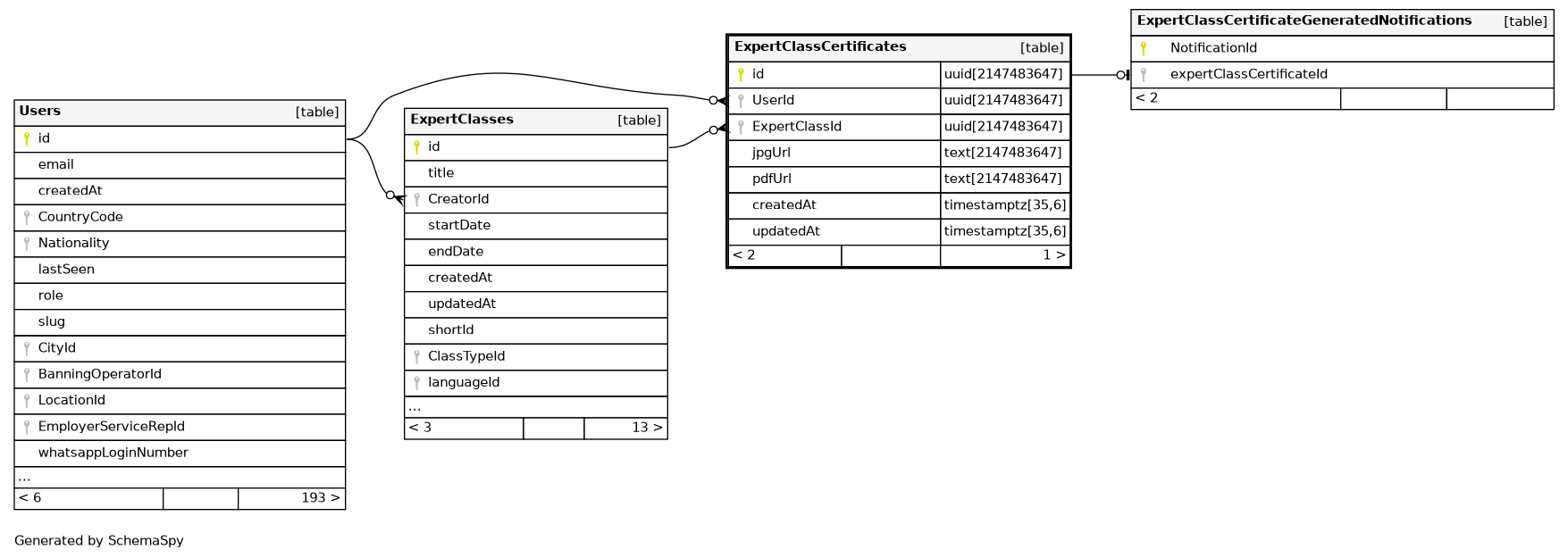 | ExpertClassCertificates_pkey | Primary key | Asc | id |