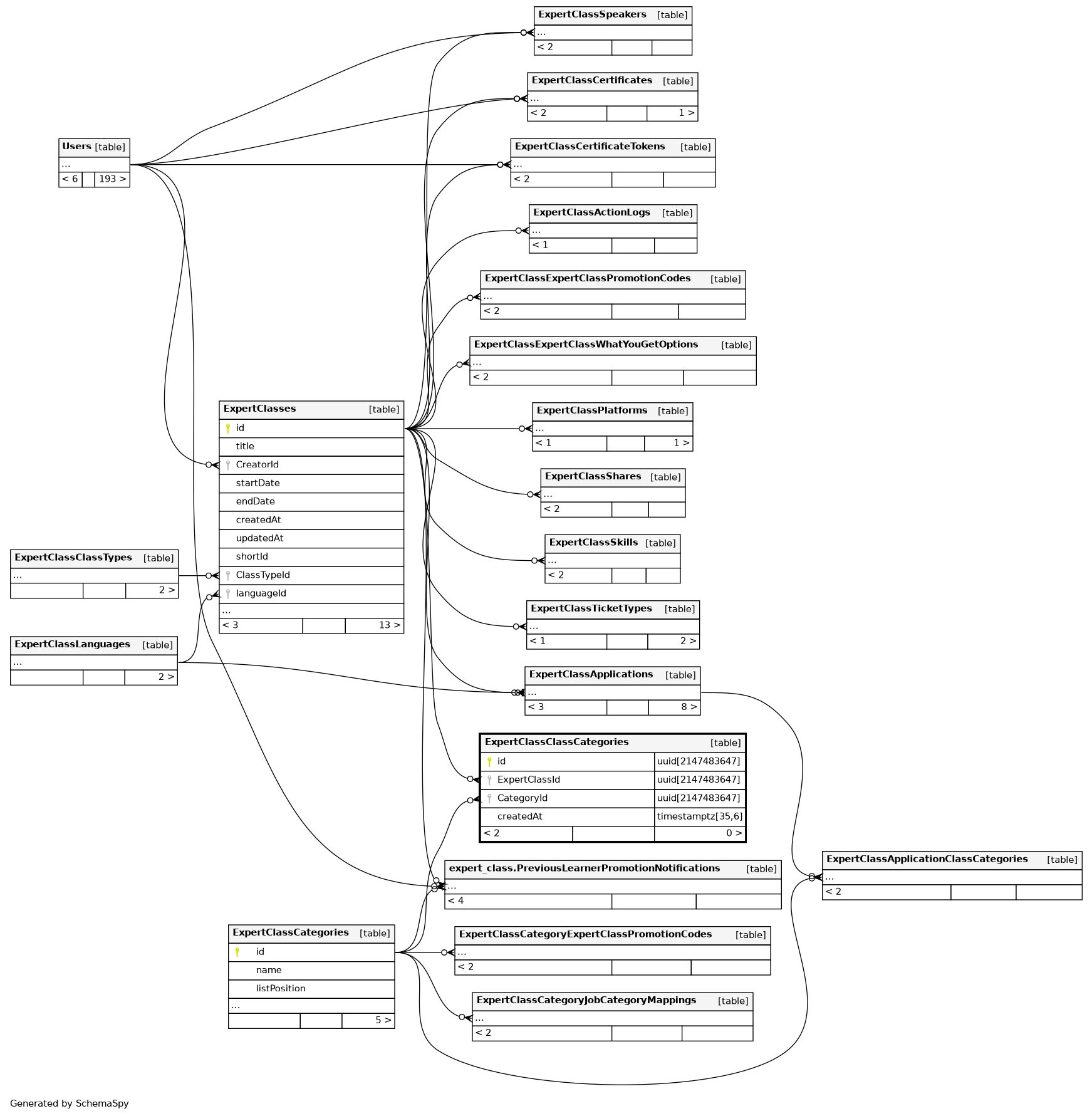| ExpertClassClassCategories_pkey | Primary key | Asc | id |