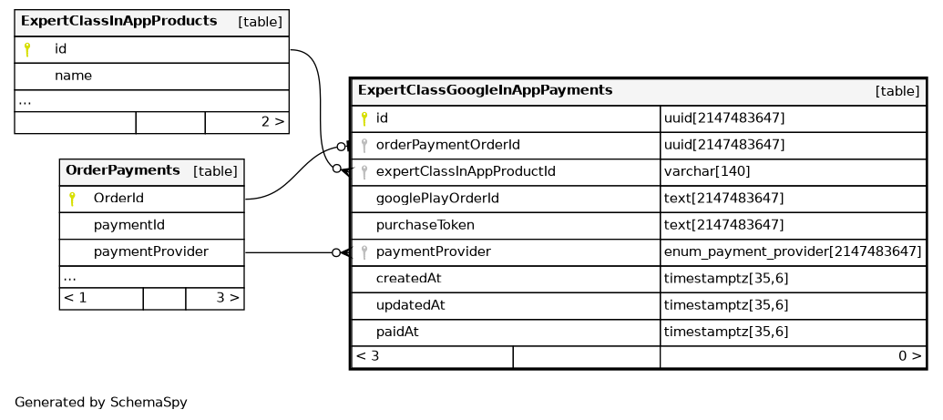 | ExpertClassGoogleInAppPayments_orderPaymentOrderId_paymentProvi | Must be unique | Asc/Asc | orderPaymentOrderId + paymentProvider |
