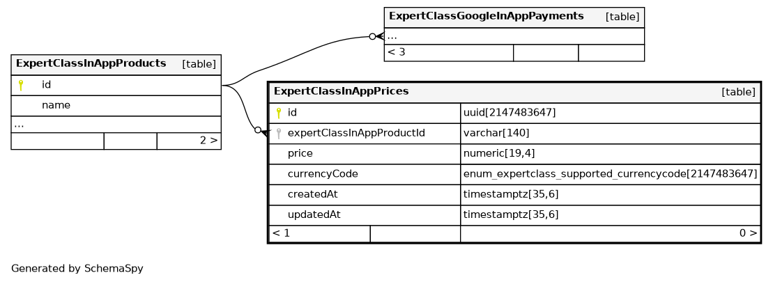 | ExpertClassInAppPrices_pkey | Primary key | Asc | id |