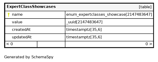 | ExpertClassShowcases_pkey | Primary key | Asc | name |