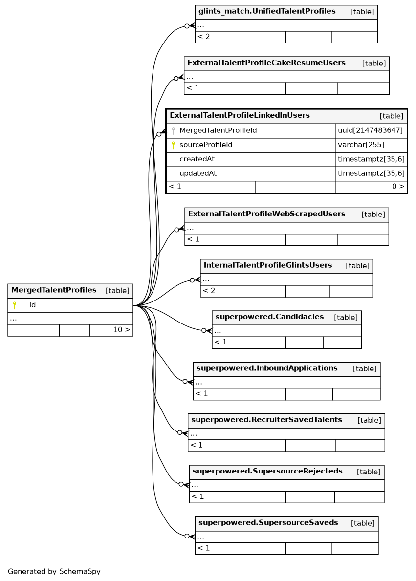 | ExternalTalentProfileLinkedInUsers_pkey | Primary key | Asc | sourceProfileId |