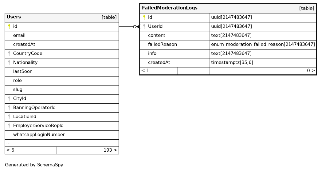 | FailedModerationLogs_pkey | Primary key | Asc | id |