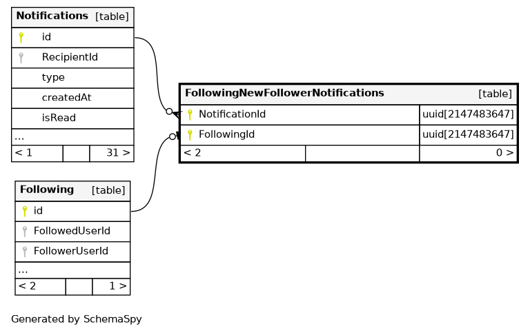| FollowingNewFollowerNotifications_pkey | Primary key | Asc/Asc | NotificationId + FollowingId |