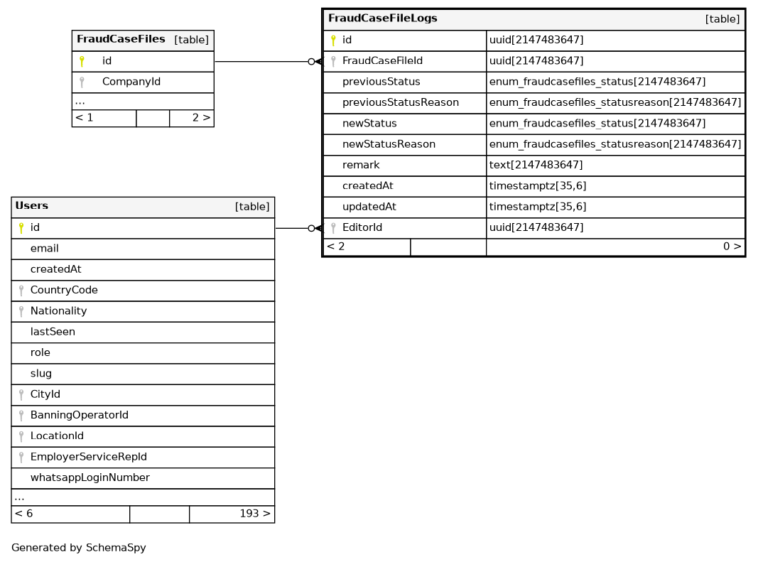 | FraudCaseFileLogs_pkey | Primary key | Asc | id |