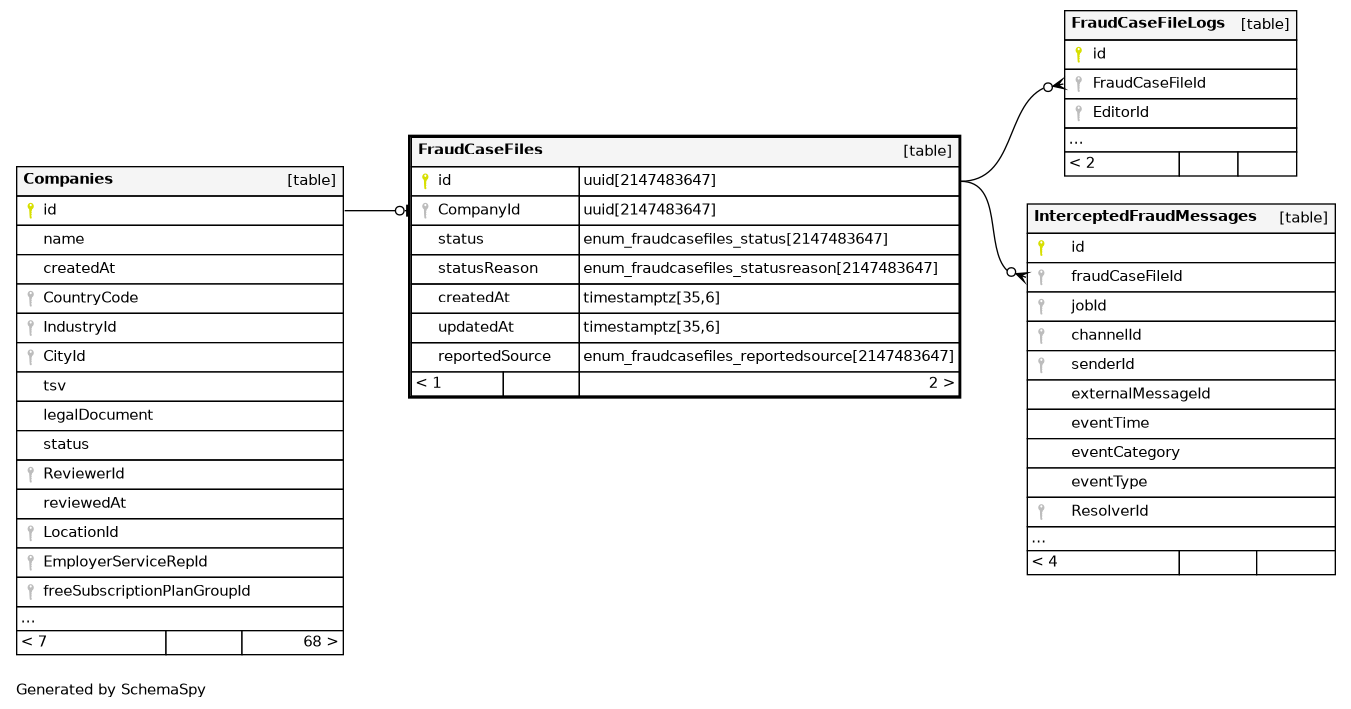 | FraudCaseFiles_CompanyId_idx | Performance | Asc | CompanyId |