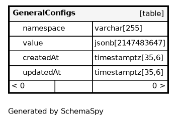 | GeneralConfigs_namespace_key | Must be unique | Asc | namespace |