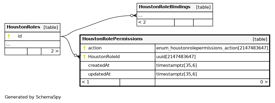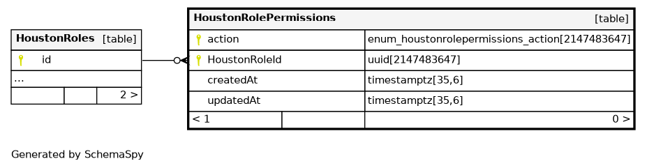 | HoustonRolePermissions_pkey | Primary key | Asc/Asc | action + HoustonRoleId |