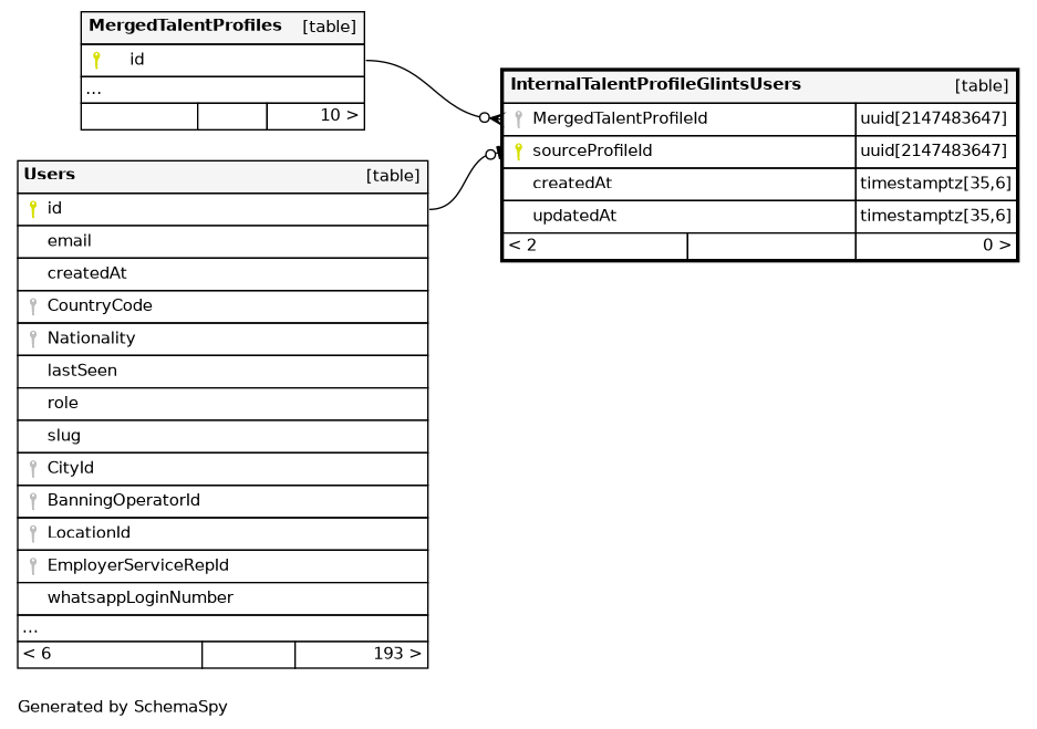 | InternalTalentProfileGlintsUsers_pkey | Primary key | Asc | sourceProfileId |