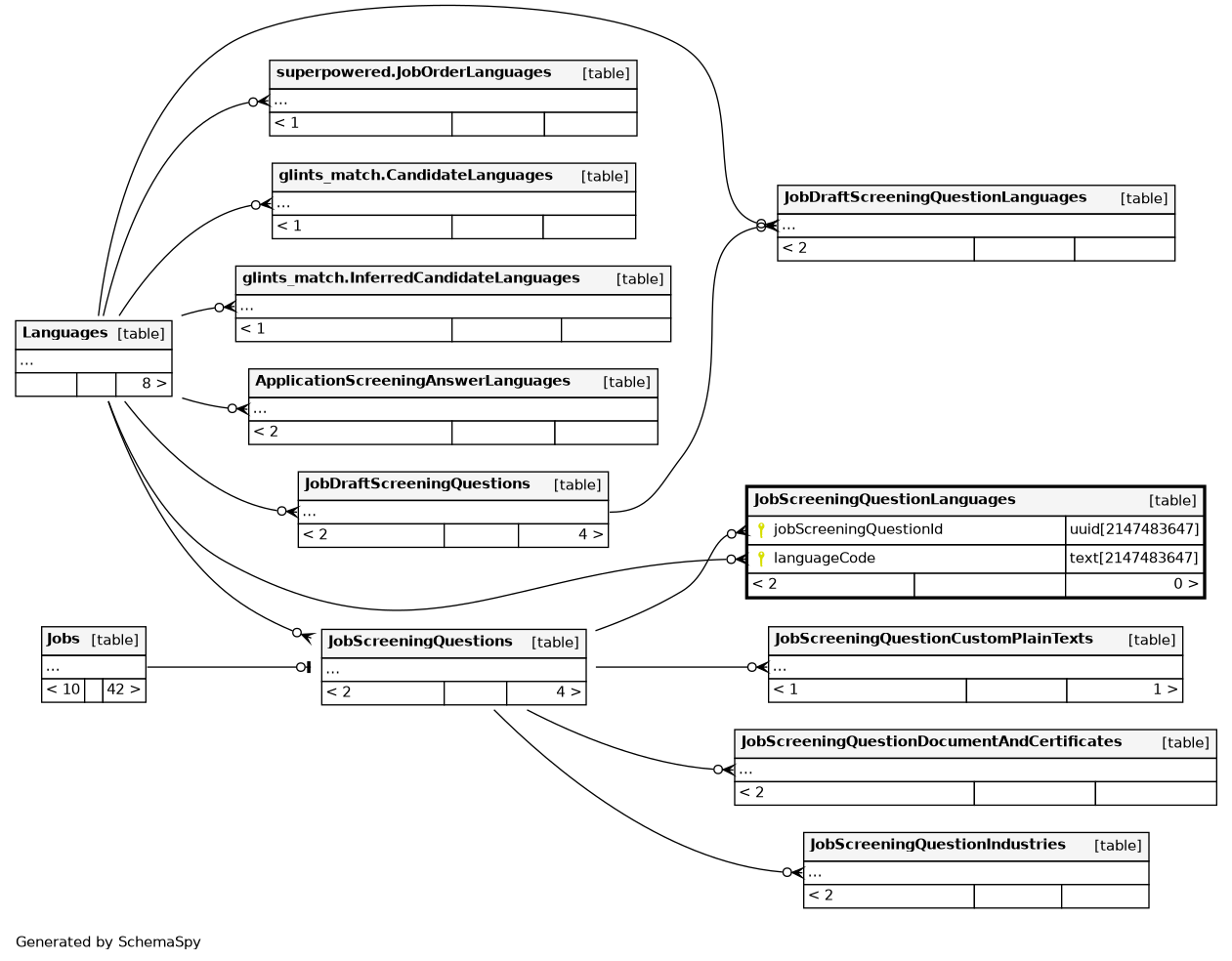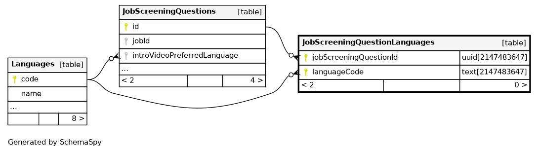 | JobScreeningQuestionLanguages_pkey | Primary key | Asc/Asc | jobScreeningQuestionId + languageCode |