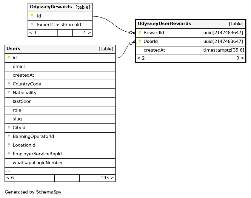 | OdysseyUserRewards_pkey | Primary key | Asc/Asc | UserId + RewardId |