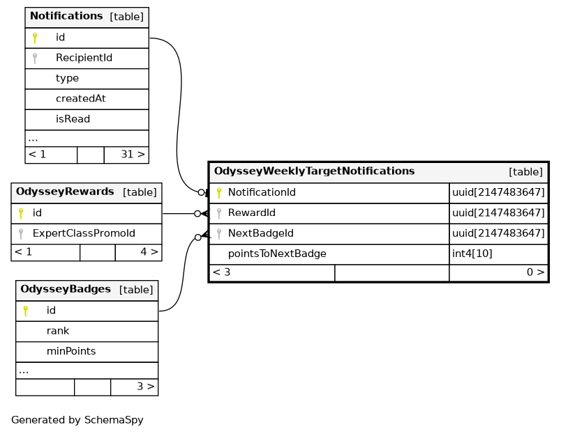 | OdysseyWeeklyTargetNotifications_pkey | Primary key | Asc | NotificationId |